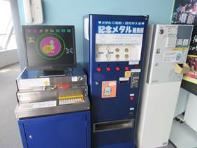 ゆめタワーまで時間がかかると思ったらタワーの周りを1周回っていたようでした。毛利邸でも少し長く歩いてしまったし,ここでも余計な体力を消耗してしまった。タワー30階は眺望の良い展望台になっています。ここにヒントがあります。ここのヒントは複数あるようで28階にもいくつかあります。28階に降りてももう一度30階に戻れるので30階のヒントを見つけきれていないのかな?と思われても一度28階に降りてみられるとよいかもしれません。ここで記念メダルを発売していた(自販機を発見した)のでゲット。こういうの,好きなんですよ。隣の刻印機,なんと100円!昔は20円だった気がしますが……。