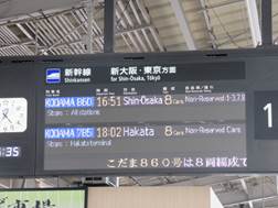 最後のスタンプもゲットしてゴールポイントへ。観光案内書は上に行く階段を過ぎてすぐです。受付の人にスマホの画面を見せてクリアファイルを無事ゲット。どこから来られたんですか?と声をかけられたので「広島から」というと,遠くからよく来られました,と労ってくれました。こういうのはうれしいですね。家族へのお土産を買う時間も十分取れて予定のこだまへ。今度はレールスターでした。ところで,この次が「博多行き」になっていますね。博多−小倉で折り返し運転する列車の場合,ここ下り方面乗り場から博多行きが出ることがあります。レールスターの車内のトイレでびしょびしょになった肌着だけでも脱ぐことに。もっと早く脱いでおくべきですね。